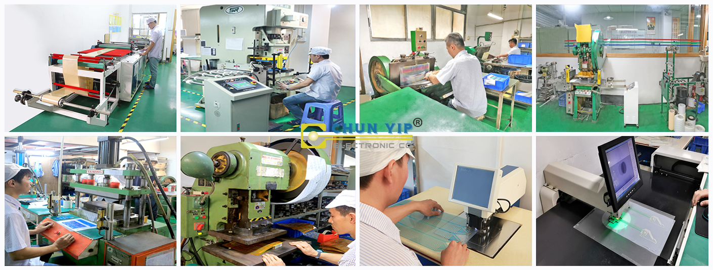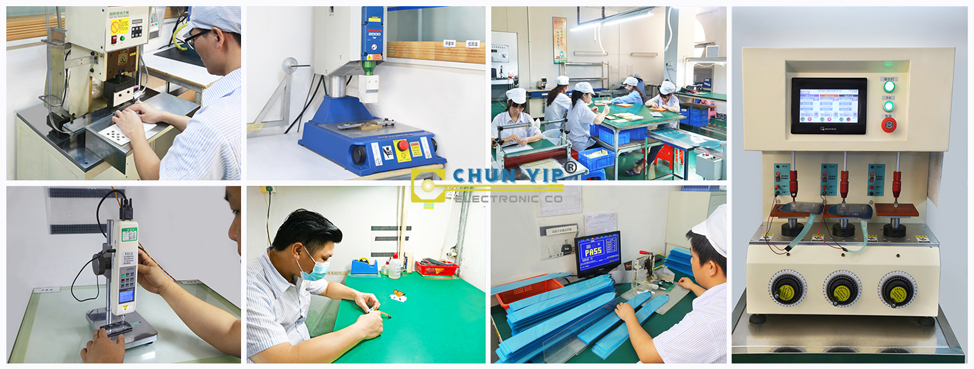 擁有全自動打端子機1臺、半自動打端子機2臺、手動打端子機1臺、覆膜機4臺、全自動打孔機1臺、半自動打孔機2臺、點燈機3臺等;2條裝配流水線將面板層、墊片和電路封裝在一起,形成一個完整的層薄膜開關。